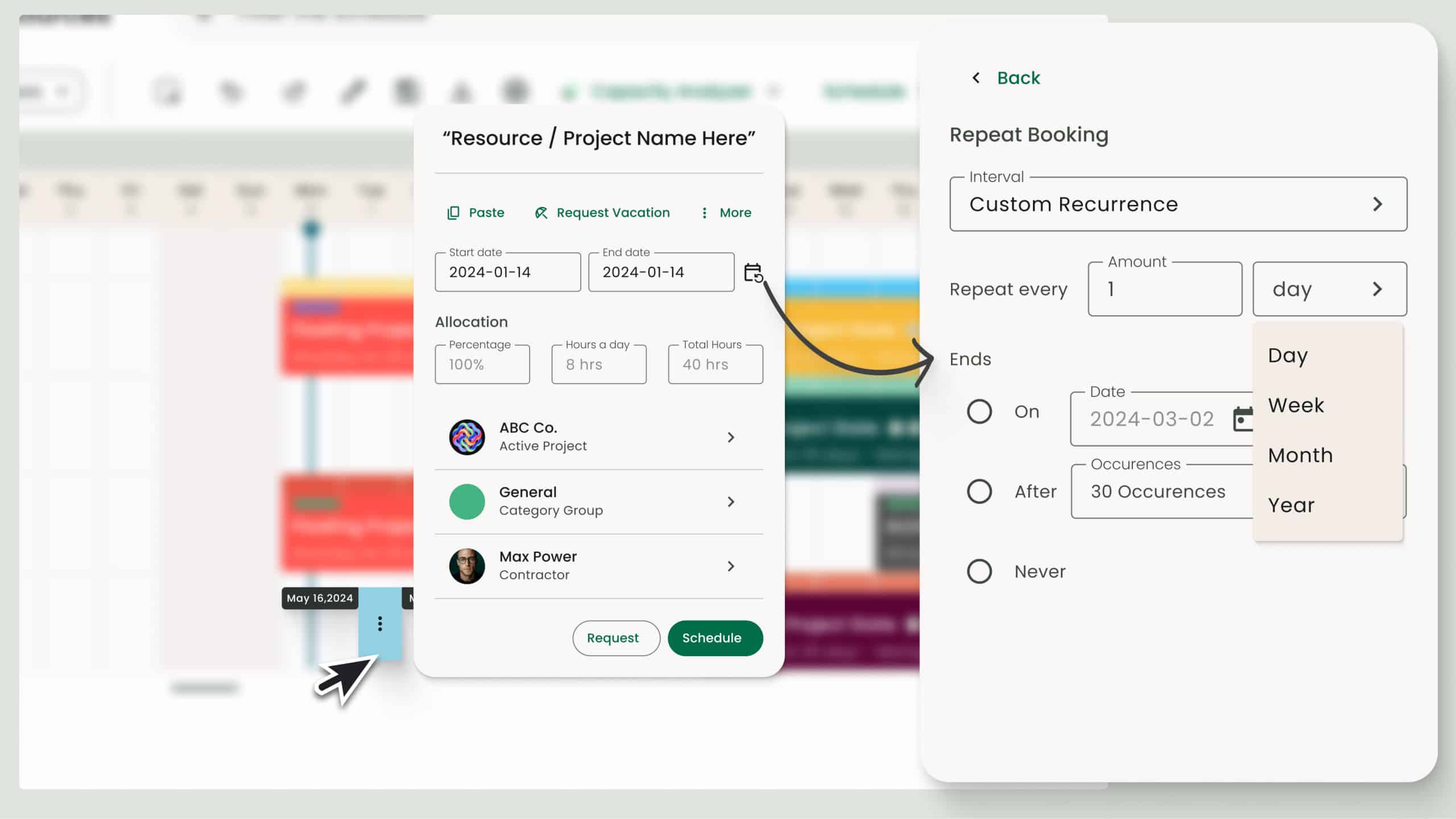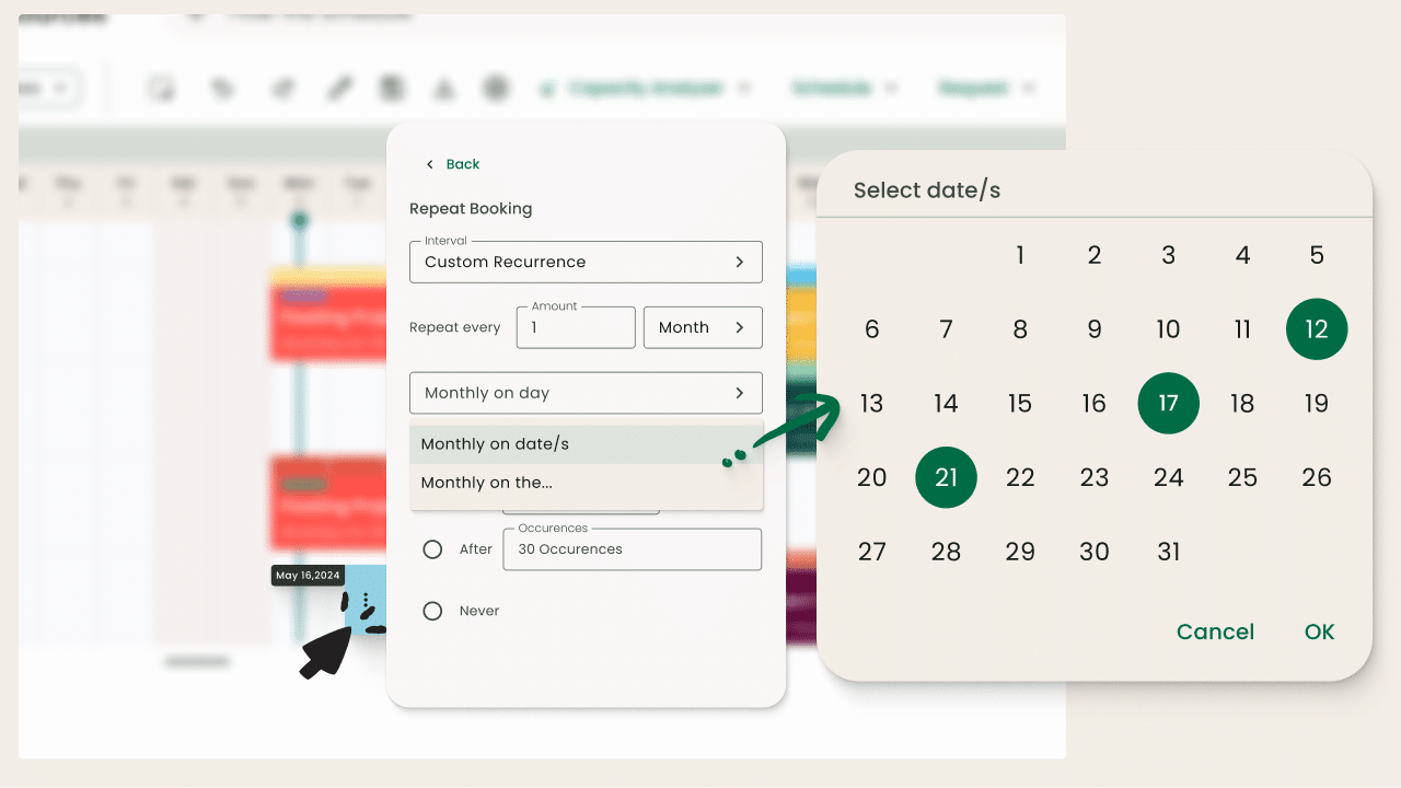 In resource management, scheduling tasks for your team is a big part of the job. And as we know, many of these bookings are recurring. To help you breeze through those time-consuming scheduling sessions, we’ve added new options for repeated bookings. It’s a straightforward update, but one that will instantly make your scheduling process smoother and more efficient.